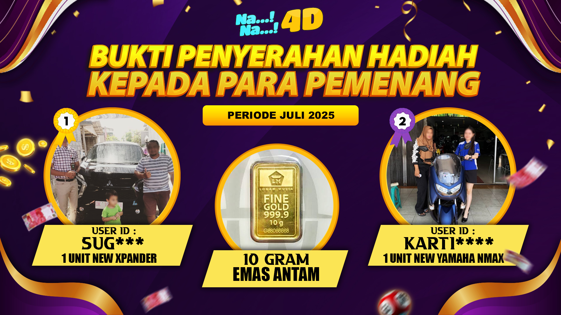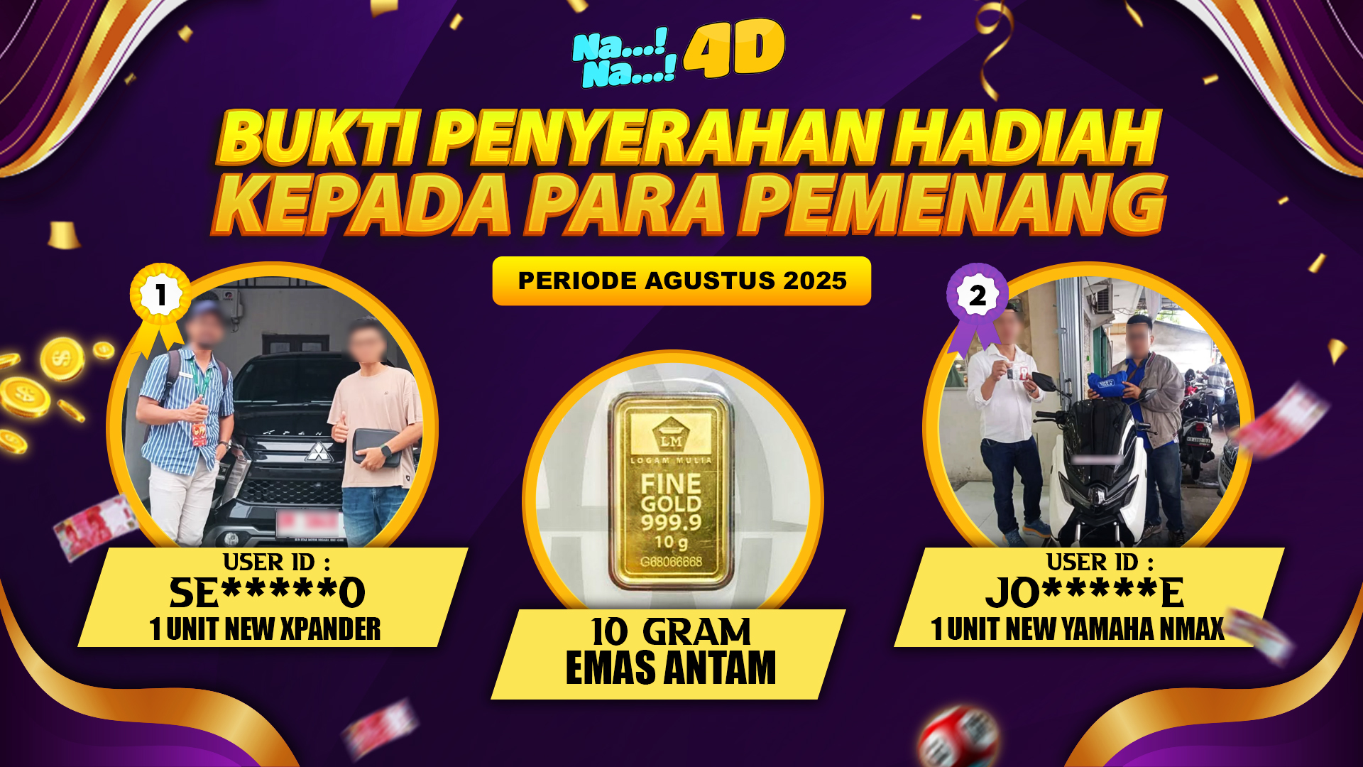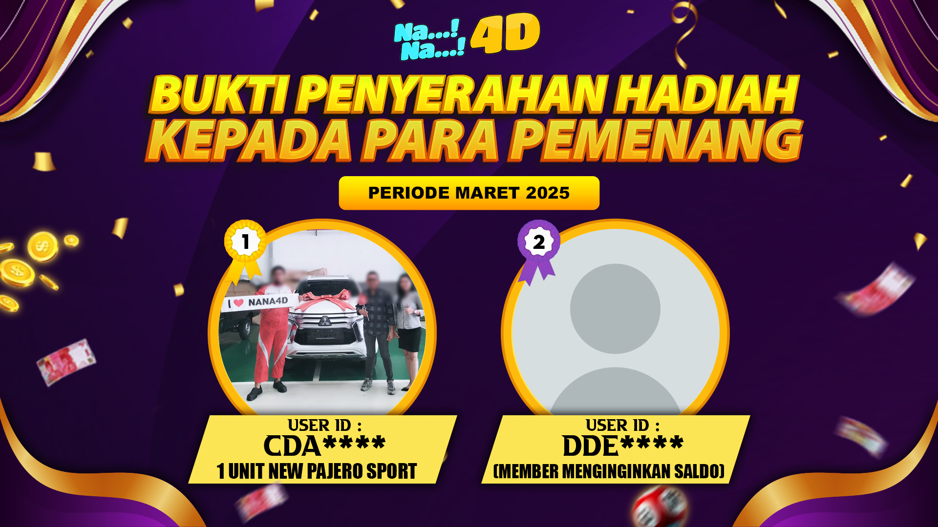3. Pemenang akan diumumkan melalui memo situs, grup Facebook, dan grup Telegram resmi Nana4D Dan Nono4D Setiap tanggal 3.